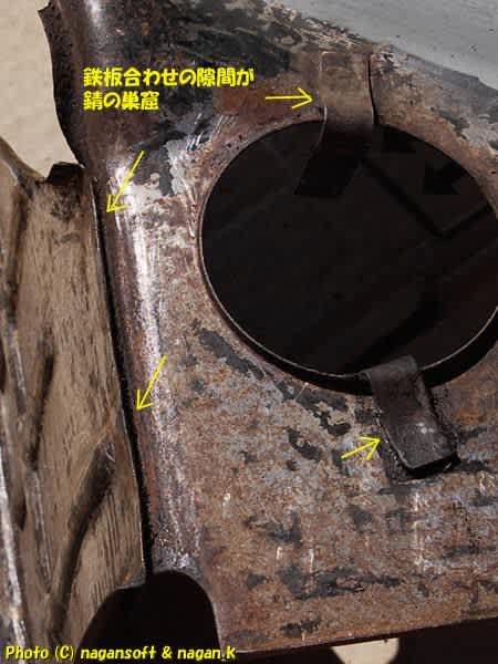 さらに垂直鉄板の張り合わせ面積が少ないからか、いやいやきっと錆で合わせ部分が膨らんで遊びがあるんだろ。垂直鉄板がなんか不安定に感じるのよね。