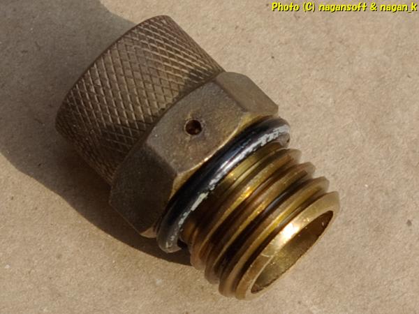 この後は、エアー出口のレギュレーター等を取り外しまして、内部のお掃除と、接続口にシールテープをしっかり巻いて再組立です。