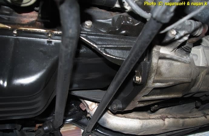 オイル滲みが軽減されたのでしょう。というか、前回のオイル漏れ箇所修理が効いたのかエンジンとミッションの合わせ部分にオイル汚れがありません。
