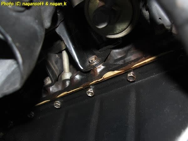 オイルパン合わせ部分は微妙にオイルが滲んでますよ。