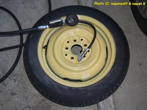 この細いタイヤに4Kg以上の空気を入れるのがちょっと怖いわ。突然「パーン」って顔に飛んでくるんじゃなかろうかと思うのは私がチキンだからでしょうね。