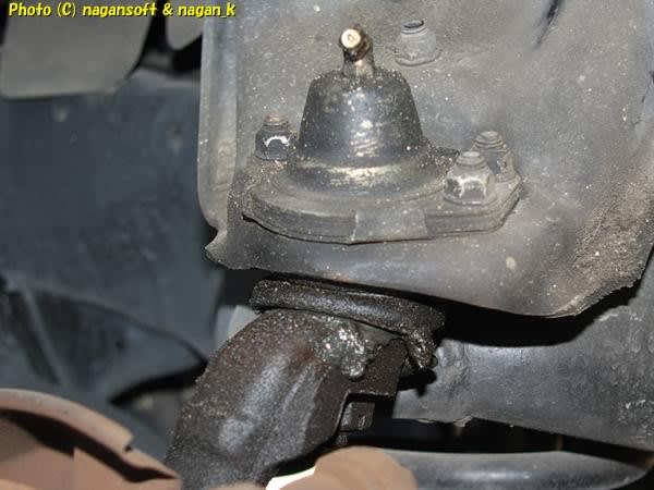 フロント足回りです。ロアーアームのブッシュが抜けていないかです。