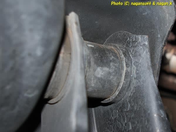 このブッシュに貫通してるボルトナットを緩めるのって、この隙間からごついメガネレンチを入れるのん?インパクトレンチは入らないのん?とか妄想だけしておきました。