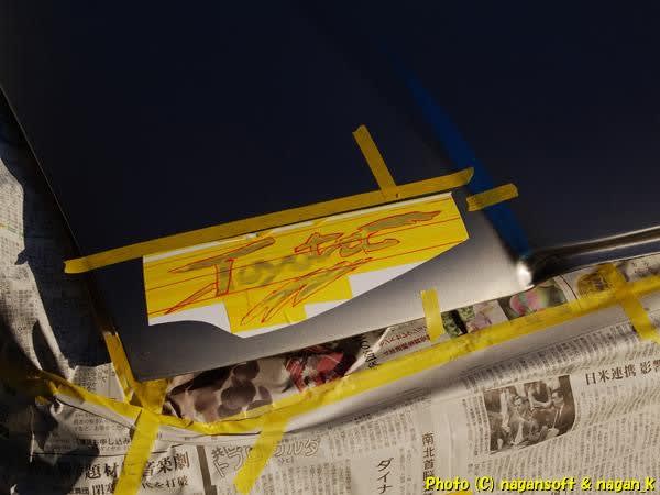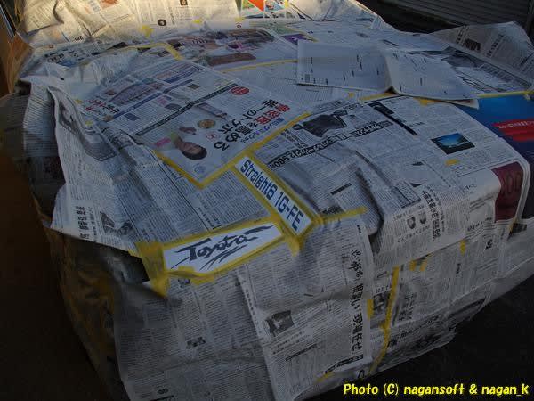 大急ぎで新聞紙マスキングします。
