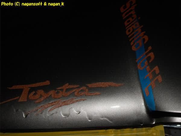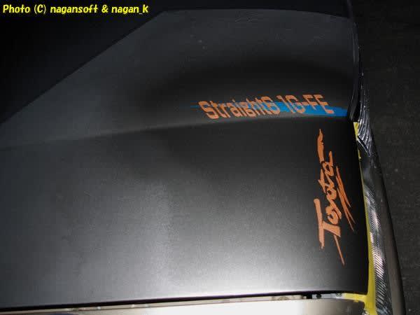そうそう、「1G-FE」の文言ですが、車体の前から見ても、横から見ても読みに違和感がなさそうな文字の傾き角度はこんなものかなーとしてみました。