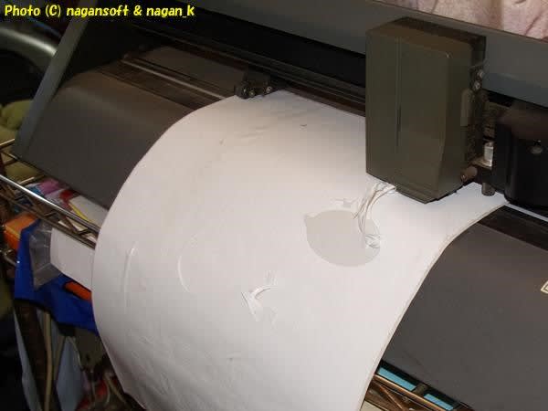 台紙から浮いている部分を刃が通った瞬間にシートがめくれあがりました。