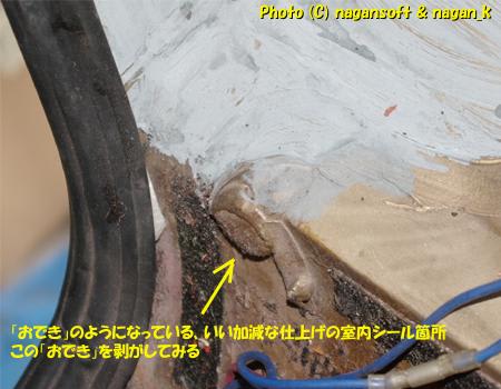 「フロアパネル、サイドパネルの合わせ部分のオデキ団子シール撤去」