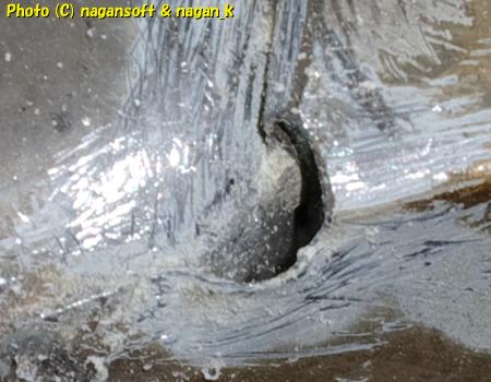 オデキ団子シールをスクレッパーで「えいやー」って剥がしたら、しっかり車体裏に大穴です。人差し指が入るサイズの穴でした。