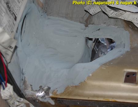 ついては、ハンダはしないで、シーリングで塞ごうと思います。尚、シーリング処置は、サビ止め塗料して、プラサフして、からの施工になります。
