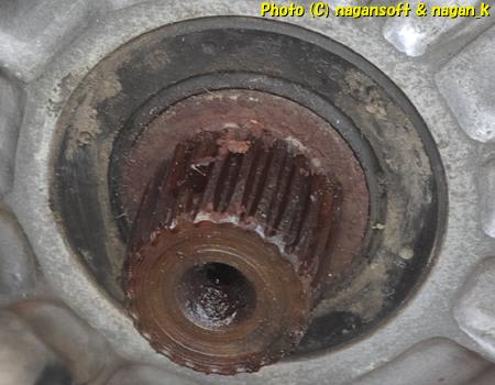 あっ、もちろんCRC556を吹いて、ドライヤーで軽くあぶり、さらにパーツクリーナーで穴内部の汚れ落とししました。これで内部のサビ汚れのようなものや、汚い固着したグリスが出てきました。