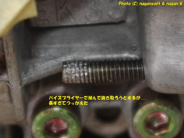 長いボルトです。もちろんの途中折れなので、残骸がメネジ側にあるのです。