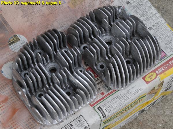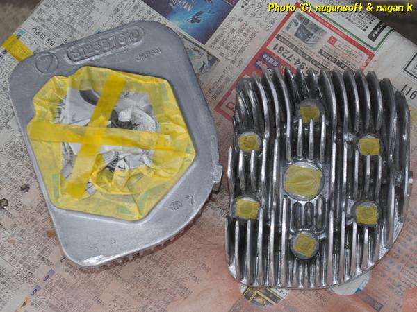 シリンダーヘッド残り1個をリューターで白錆研磨です。