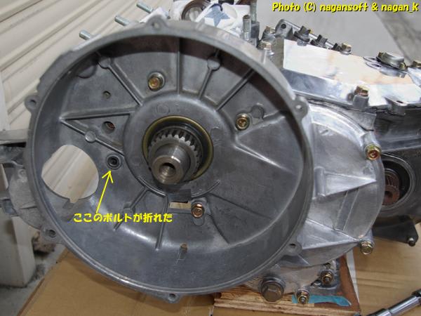はぁー、クラッチハウジングを外して折れボルトの抜き取り作業だなー。とか、これからの労力を嘆いていたときです。