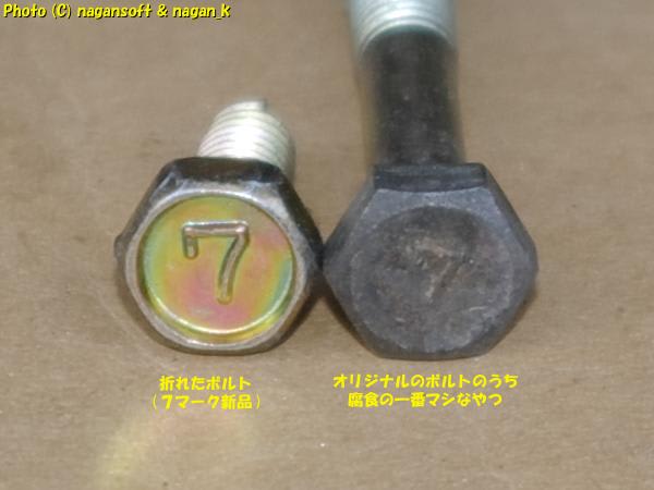 で、折れた新品のボルトですが、自動車用で売られていた7マークボルトなのよね。