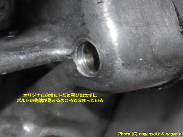 新品ボルトを奢っているからねー。クランクケース側はアルミ合金にネジ溝タップしているからねー。