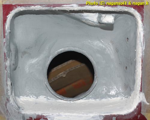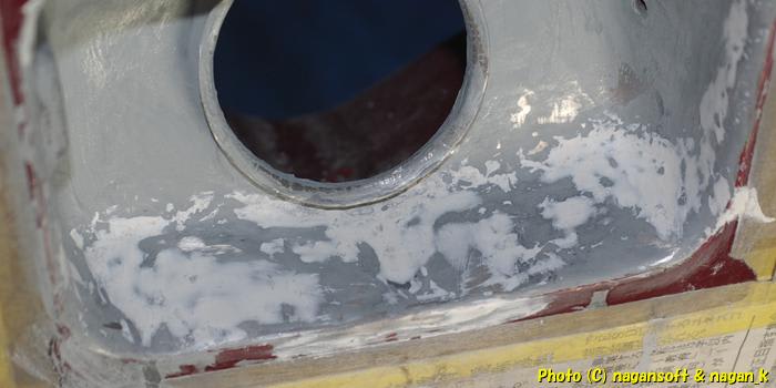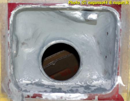 昨日に燃料給油口ソーサーへ、薄付けパテを盛りました。