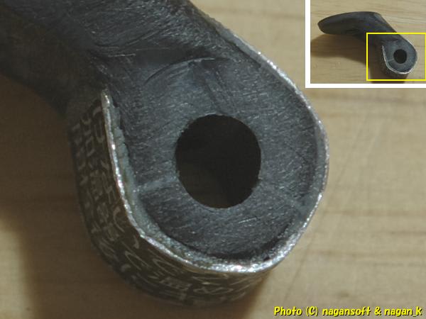 リンク穴にクラックが2か所発生して、本当に崩壊寸前だった部分はこうなりました。