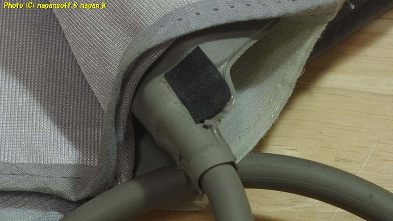 腕に巻きつけた状態で耳を近づけて空気漏れ箇所をおおよそ断定しました。