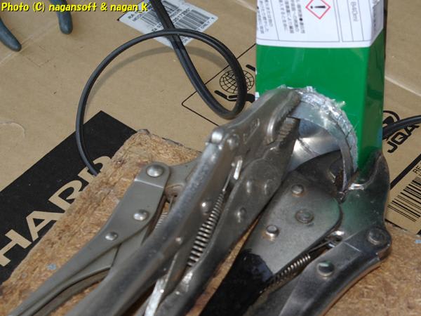 バイスプライヤーを突っ込んで筒を仮固定します。