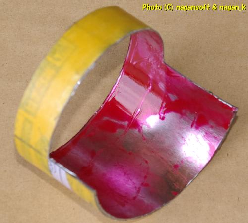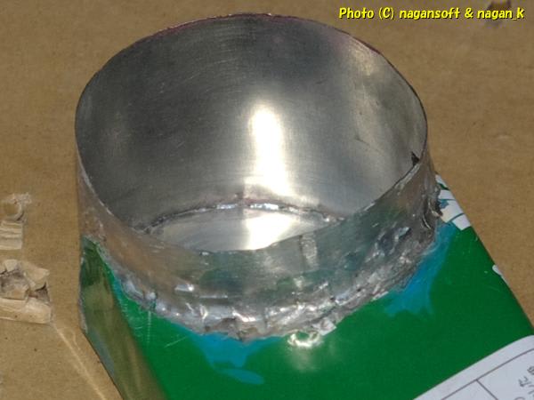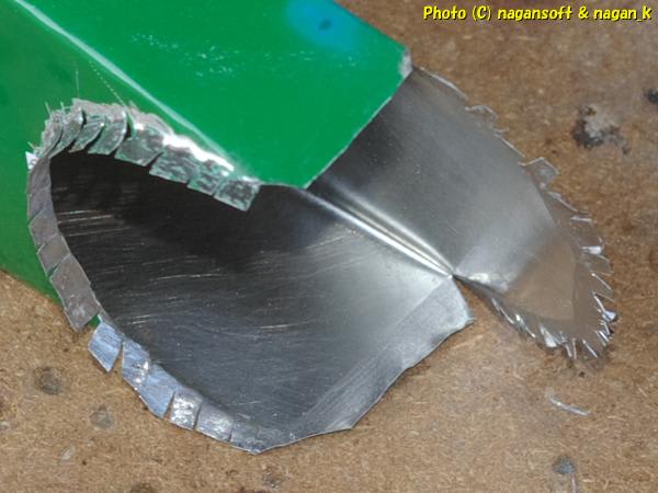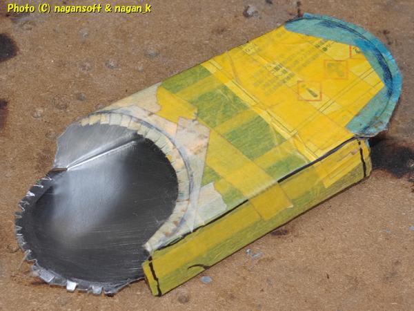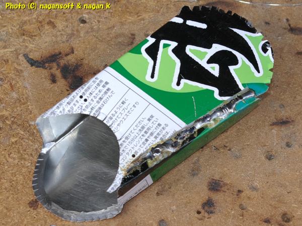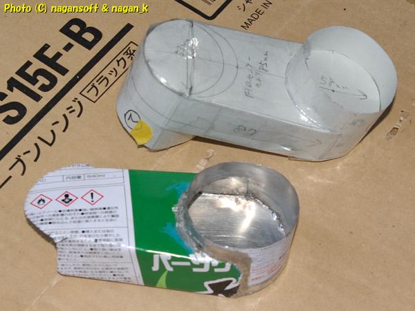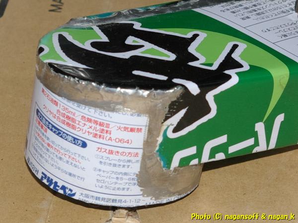 ラッカースプレー缶から切り出したパーツは、もちろんのようにラッカーで汚れてます。実質内側がラッカー塗装です。