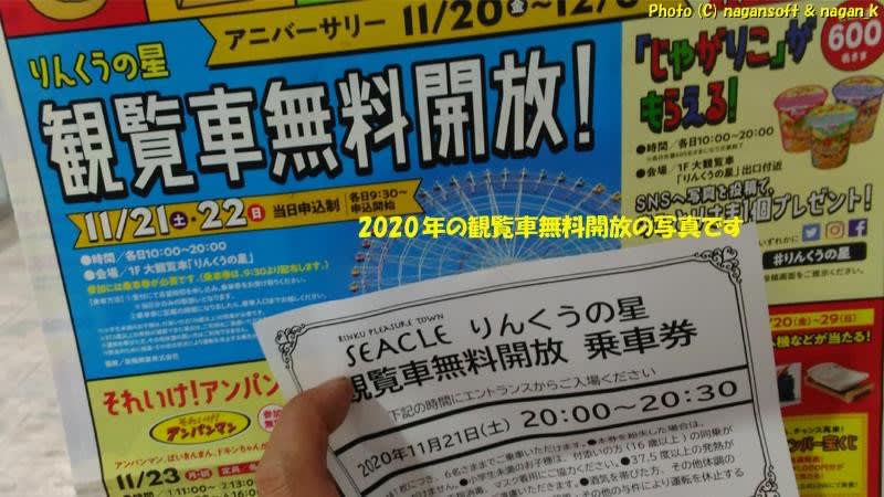 11月13日にりんくうシークル内の告知板を確認したのですが観覧車無料開放については記されてなかったのよ。