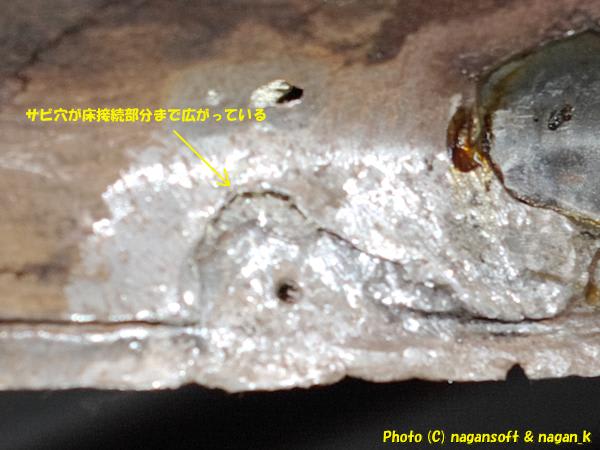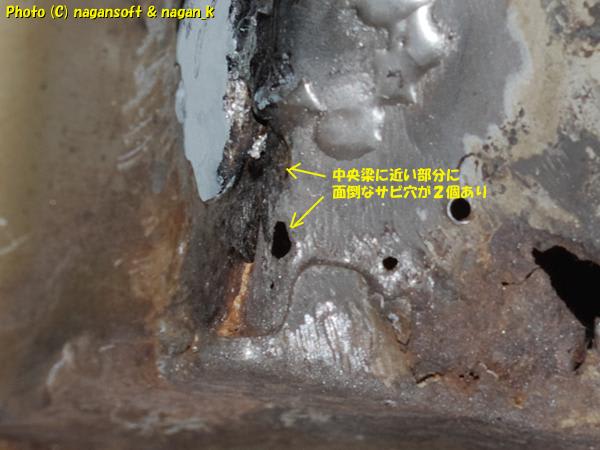 中央梁に近い部分に面倒なサビ穴があるんです。