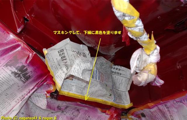 「燃料タンクがぶら下がる空間」の下縁部分に黒色を塗ることにします。