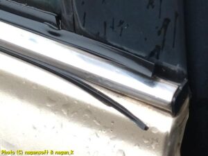 右後ろ扉のガラス下モールが壊れてきている~っ。