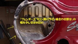 車弄り、スバル R-2 (360cc) スバル R-2 (360cc)、右前フェンダーとフロントパネル合わせ部分調整1日目