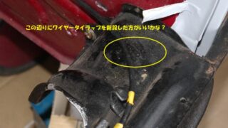本日は少しだけスバル弄りの時間が取れました。少しの時間でも作業を進めるのだ。だって、ここのところ停滞ぎみなので...エンジンフードオープナーワイヤーのアウターを補強します。ワイヤータイラップで車体に固定される箇所にマスキングテープをつけています。アウターの補強といいますが、ド素人の私が特別なことをできるわけありません。現状のアウターの上になにかをつけて、アウターの上にアウターのようなものをするだけなのです。かといって、ビニールテープを巻きつけるのは嫌です。だってテープの糊が後...