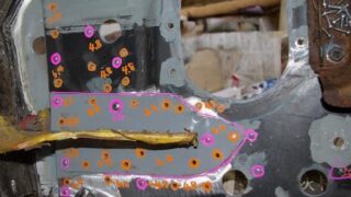 本日のスバル弄りは2時間30分でした。リベット穴調整で仮組みしていた鉄板を全部取り外します。わかっちゃいるけど、高温多湿の今日このごろ。たった1週間ほどで錆再発するのよね。梅雨のときより気温が高いもんだから錆が出るのが速いこと。もちろん、ちまちまと錆退治ですよ。痴呆親父が構築している補強梁部分。それの裏側(トランク床裏になります)も錆取り追求しました。ここはバネルボンド糊シロではないので錆止塗料(エポローバル)を筆塗りします。トランク床鉄板も最終調整です。といっても錆再発箇所...